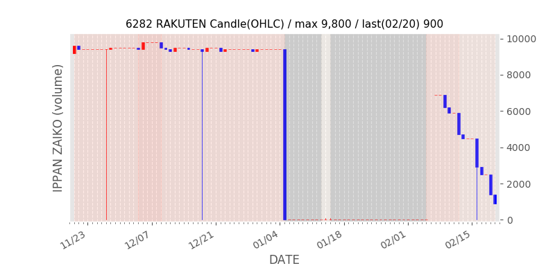 権利落ち日になると在庫が急回復します。どれだけの在庫が供給されたかを類推できます。もちろん、権利付最終日以前に大量補充された例も目立ちますから、過去チャートをご覧になる際は日付にご注意ください。