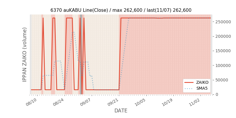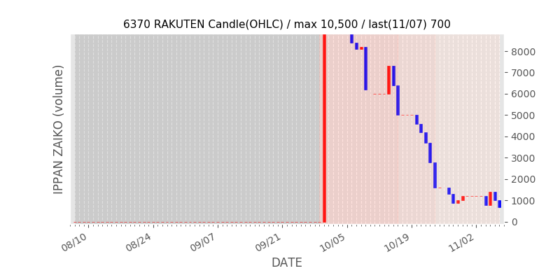 権利落ち日になると在庫が急回復します。どれだけの在庫が供給されたかを類推できます。もちろん、権利付最終日以前に大量補充された例も目立ちますから、過去チャートをご覧になる際は日付にご注意ください。
