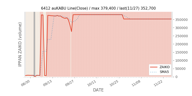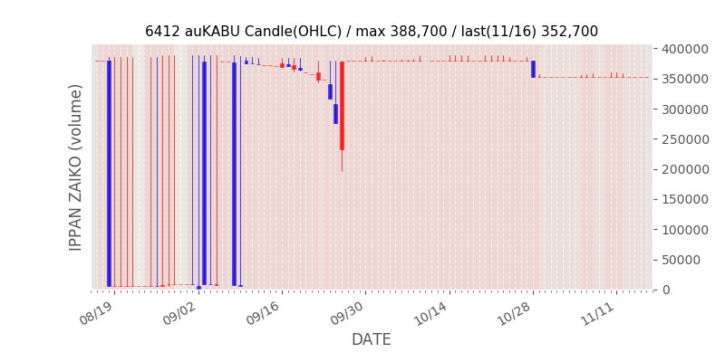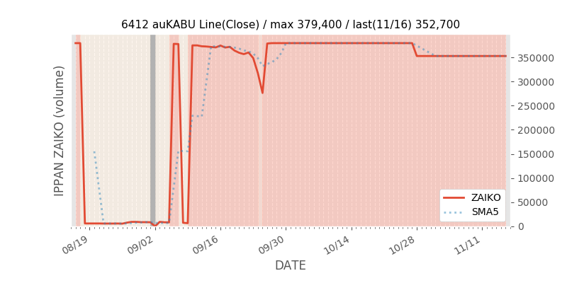 権利落ち日になると在庫が急回復します。どれだけの在庫が供給されたかを類推できます。もちろん、権利付最終日以前に大量補充された例も目立ちますから、過去チャートをご覧になる際は日付にご注意ください。