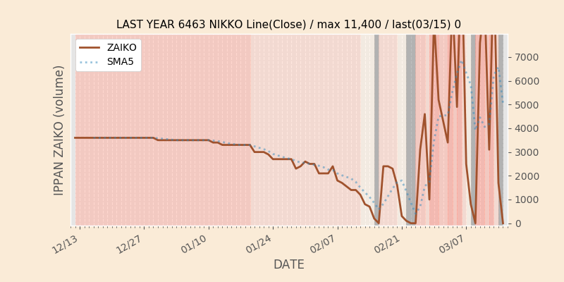 権利落ち日になると在庫が急回復します。どれだけの在庫が供給されたかを類推できます。もちろん、権利付最終日以前に大量補充された例も目立ちますから、過去チャートをご覧になる際は日付にご注意ください。