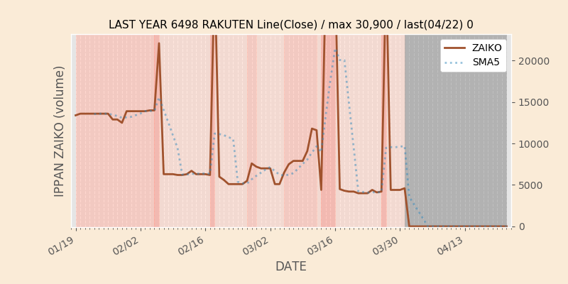 権利落ち日になると在庫が急回復します。どれだけの在庫が供給されたかを類推できます。もちろん、権利付最終日以前に大量補充された例も目立ちますから、過去チャートをご覧になる際は日付にご注意ください。