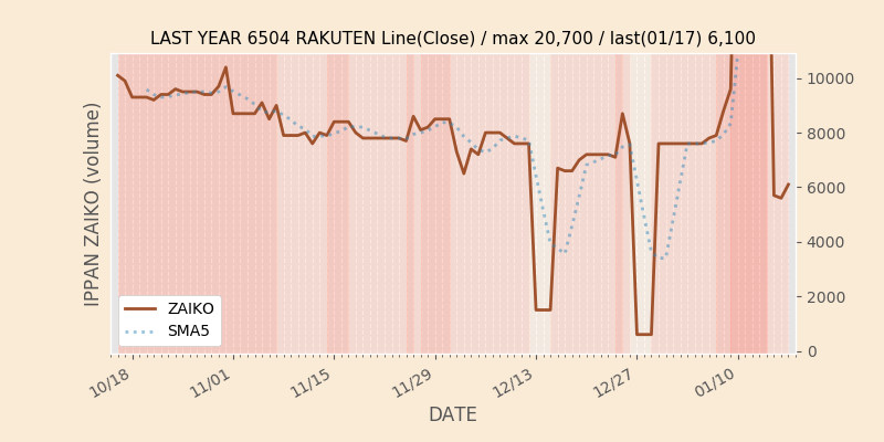 高値付近にある指値注文の合計株数です。一見在庫は無いのにキープの注文だけ行われクロス実行されないまま終わる注文は多数あり、その株数がどのくらいか?を推定する手がかりです。当然株数の全てが一般売りとは限りませんが、在庫数だけでは実態が見えない現状への対策です。