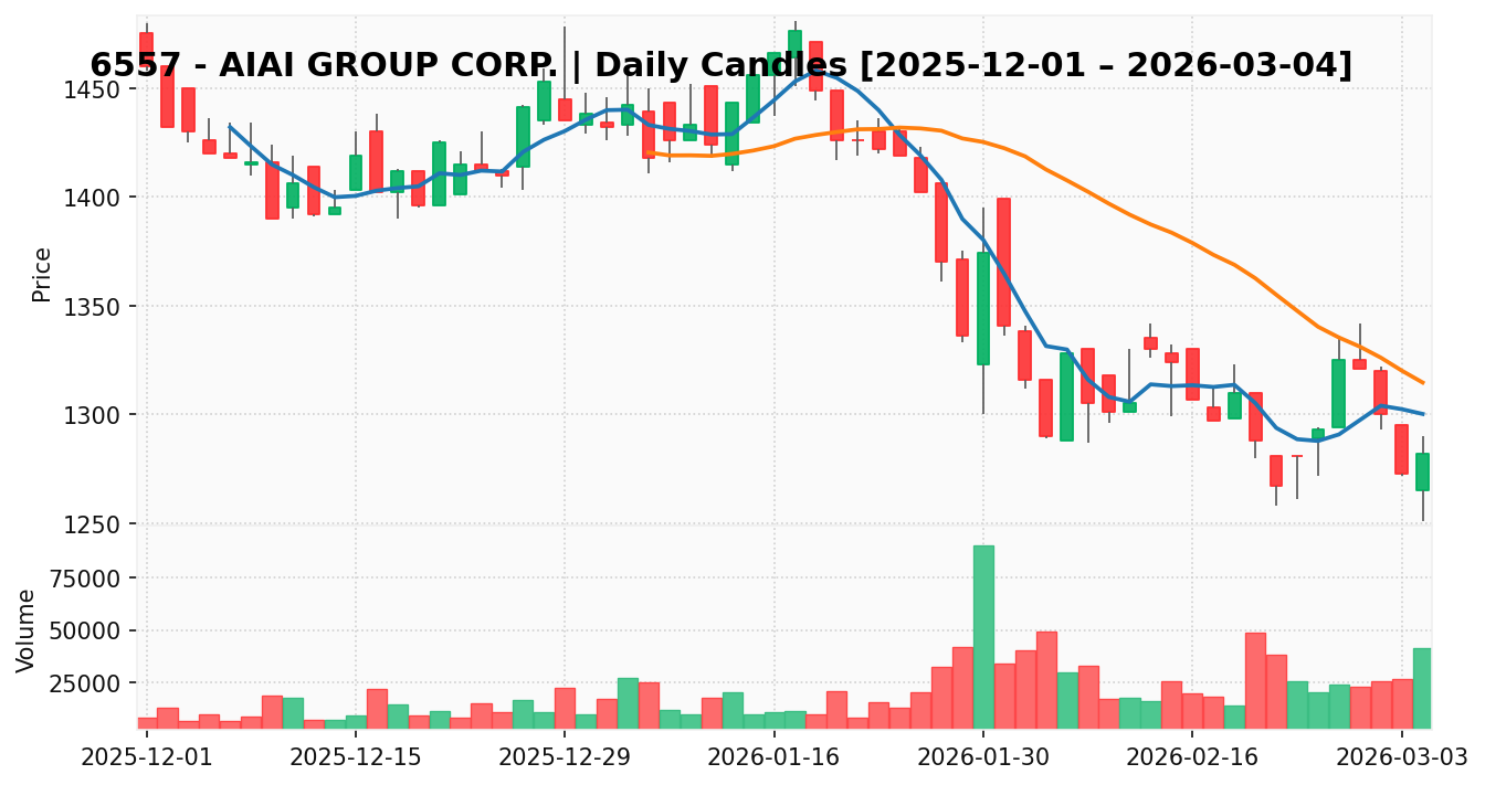 AIAIG(銘柄コード:6557) ※2026/03/05朝更新