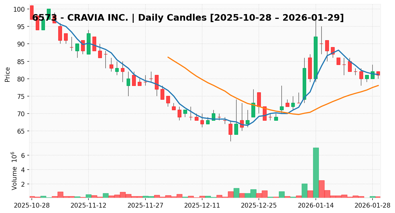 CRAVIA(銘柄コード:6573) ※2026/01/30朝更新