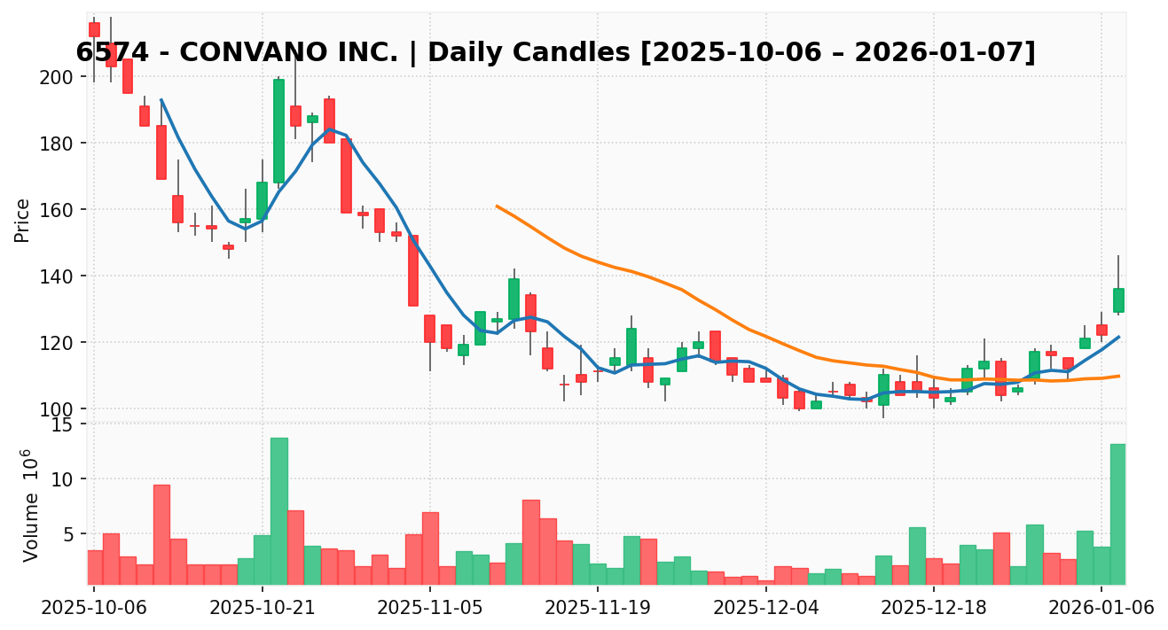 コンヴァノ(銘柄コード:6574) ※2026/01/08朝更新