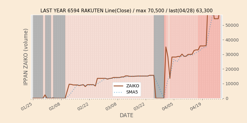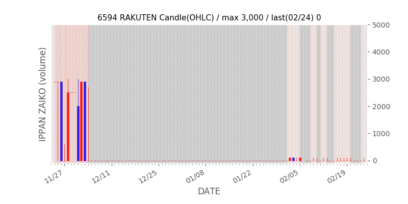 権利落ち日になると在庫が急回復します。どれだけの在庫が供給されたかを類推できます。もちろん、権利付最終日以前に大量補充された例も目立ちますから、過去チャートをご覧になる際は日付にご注意ください。