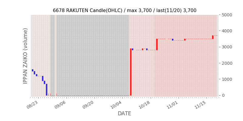 権利落ち日になると在庫が急回復します。どれだけの在庫が供給されたかを類推できます。もちろん、権利付最終日以前に大量補充された例も目立ちますから、過去チャートをご覧になる際は日付にご注意ください。