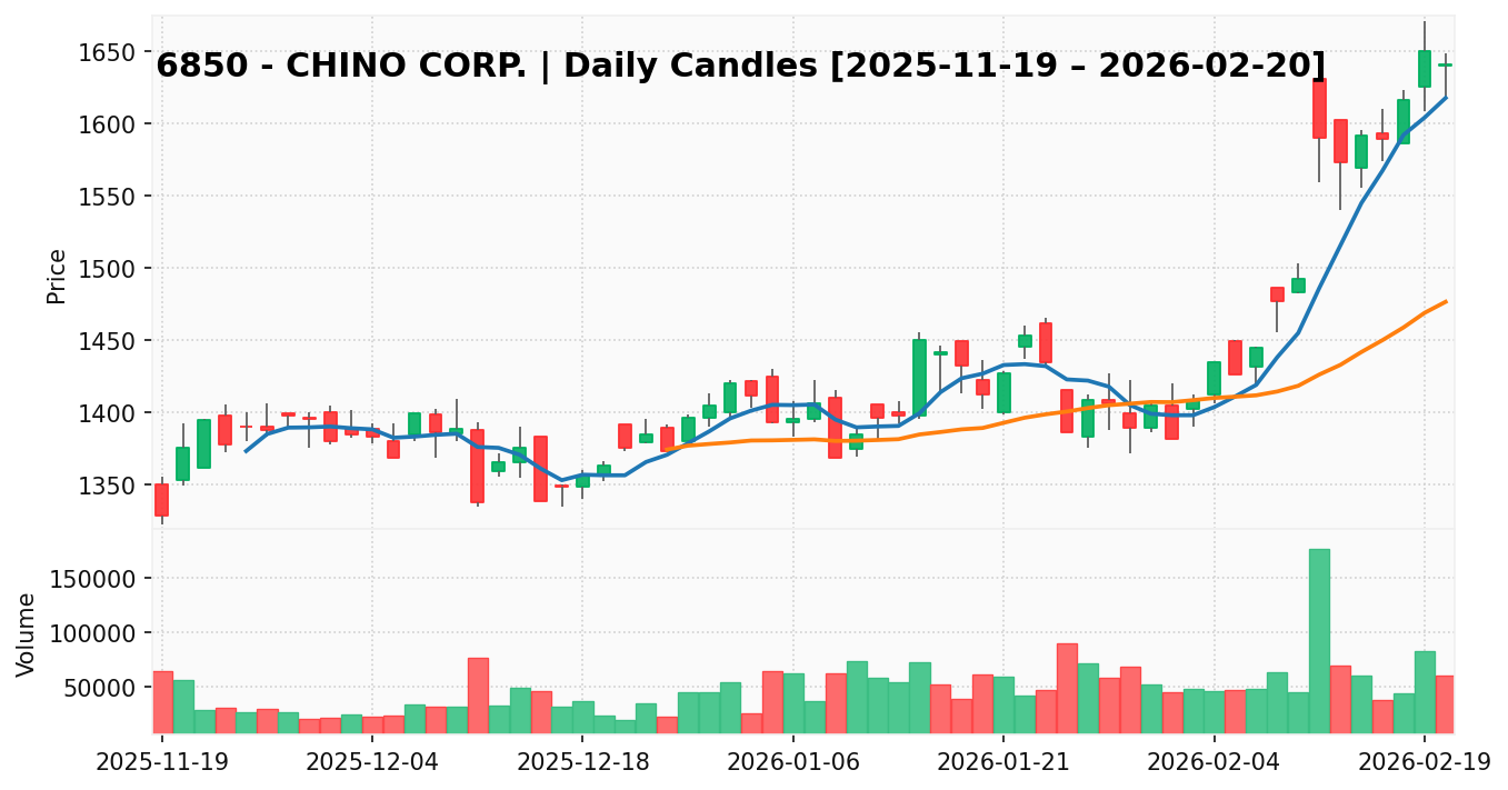 チノー(銘柄コード:6850) ※2026/02/22朝更新