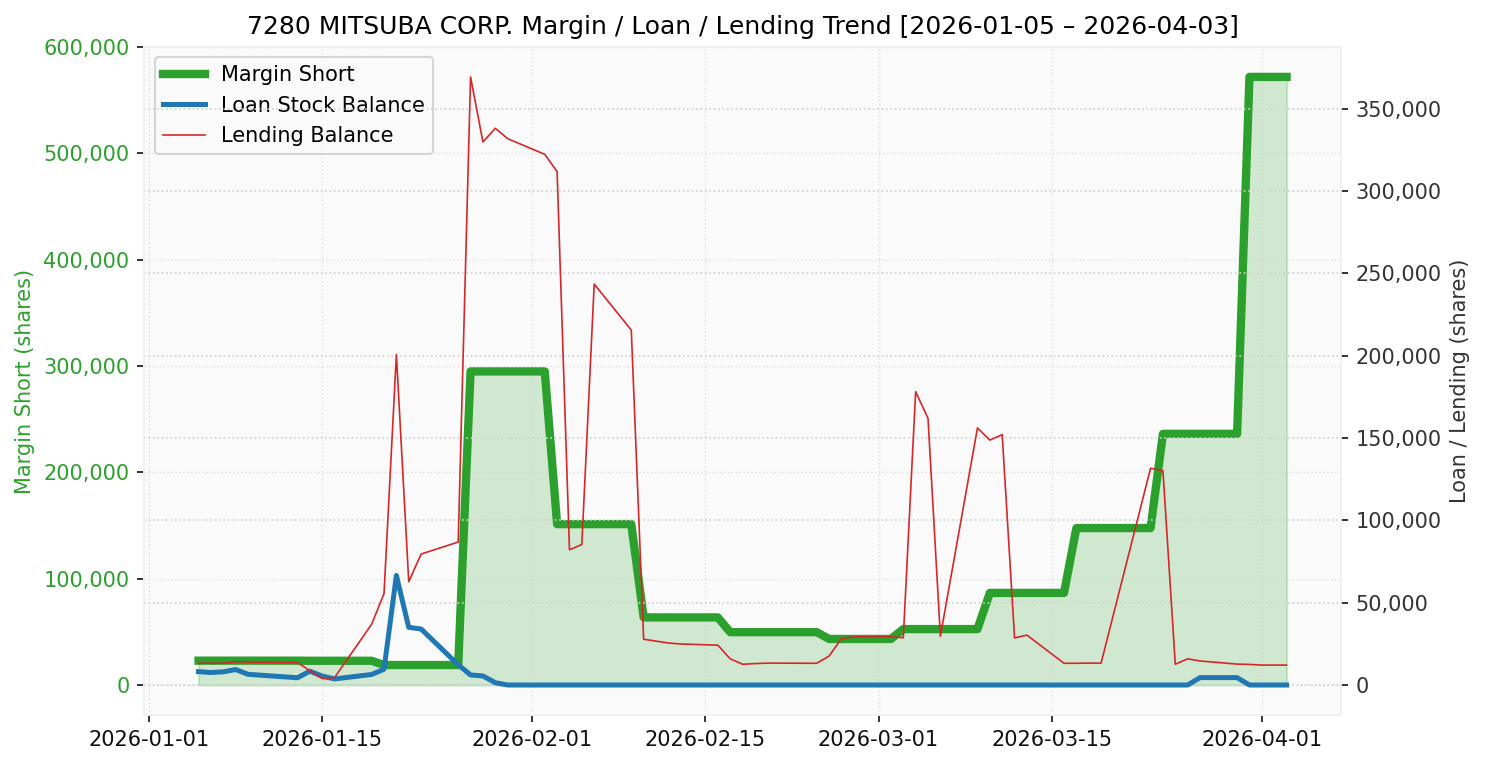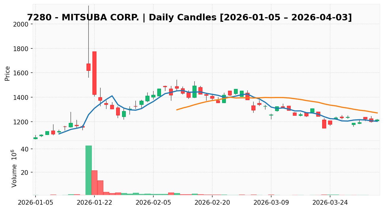 ミツバ(銘柄コード:7280) ※2026/04/06朝更新