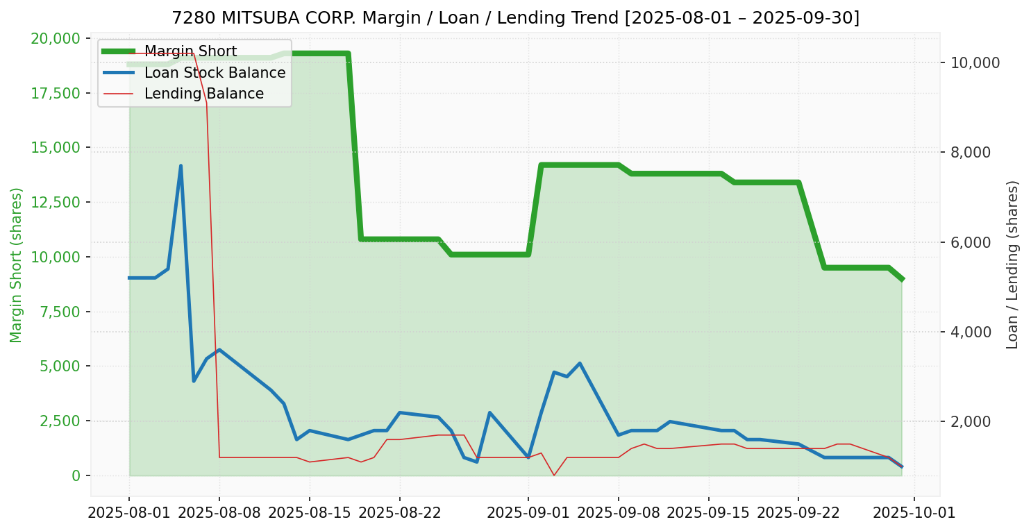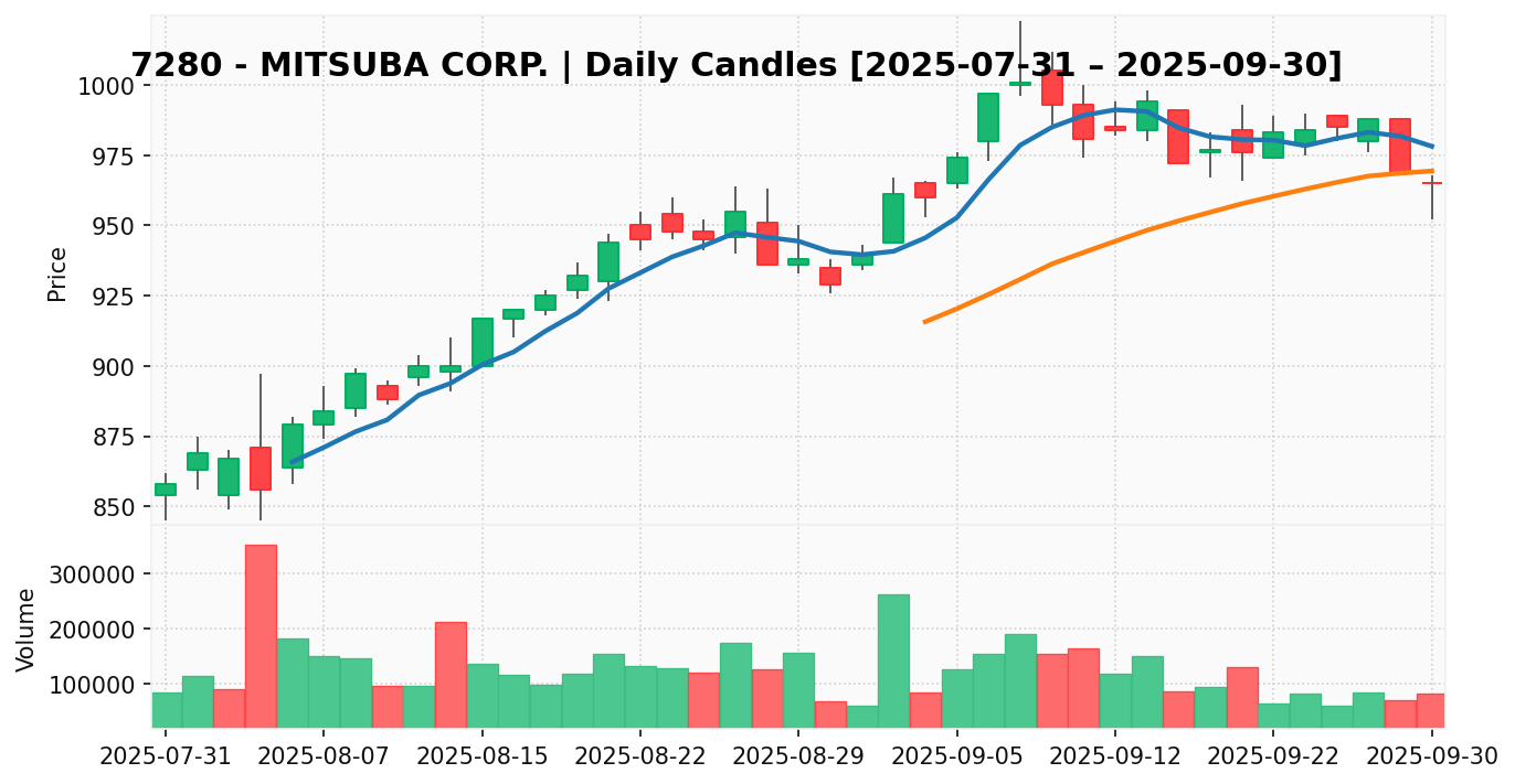 ミツバ(銘柄コード:7280) ※2025/10/01朝更新