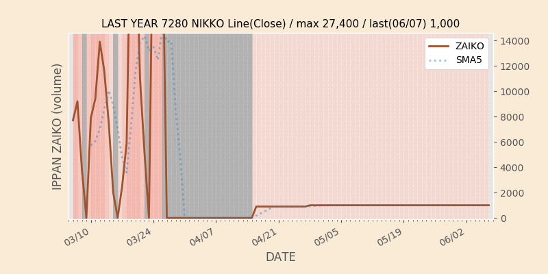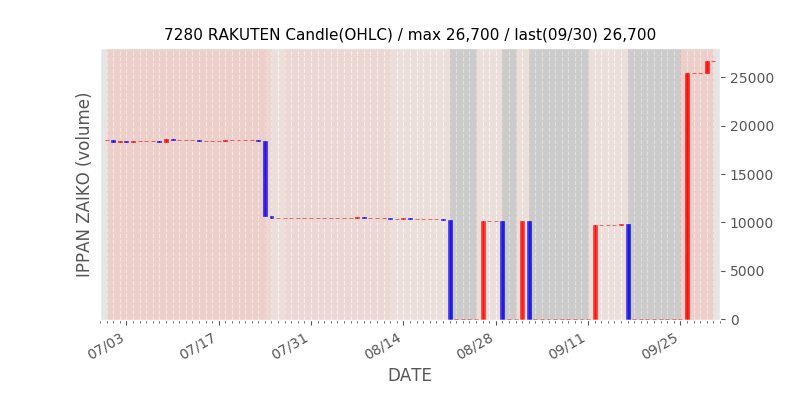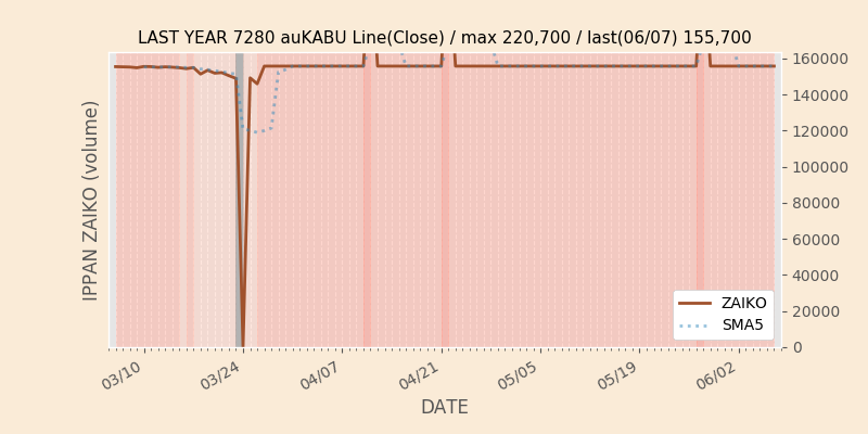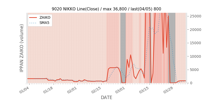 権利落ち日になると在庫が急回復します。どれだけの在庫が供給されたかを類推できます。もちろん、権利付最終日以前に大量補充された例も目立ちますから、過去チャートをご覧になる際は日付にご注意ください。