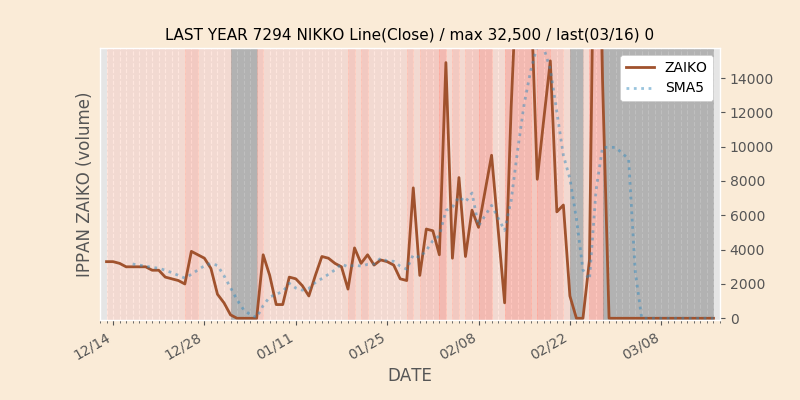 権利落ち日になると在庫が急回復します。どれだけの在庫が供給されたかを類推できます。もちろん、権利付最終日以前に大量補充された例も目立ちますから、過去チャートをご覧になる際は日付にご注意ください。