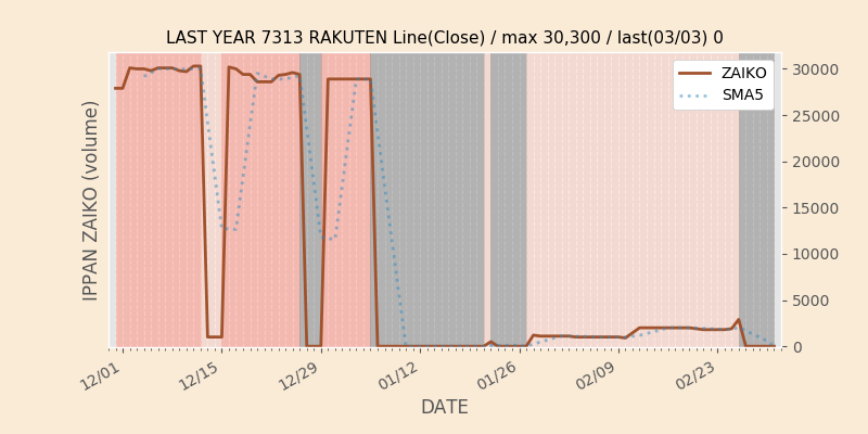 権利落ち日になると在庫が急回復します。どれだけの在庫が供給されたかを類推できます。もちろん、権利付最終日以前に大量補充された例も目立ちますから、過去チャートをご覧になる際は日付にご注意ください。