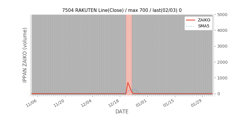 高値付近にある指値注文の合計株数です。一見在庫は無いのにキープの注文だけ行われクロス実行されないまま終わる注文は多数あり、その株数がどのくらいか?を推定する手がかりです。当然株数の全てが一般売りとは限りませんが、在庫数だけでは実態が見えない現状への対策です。
