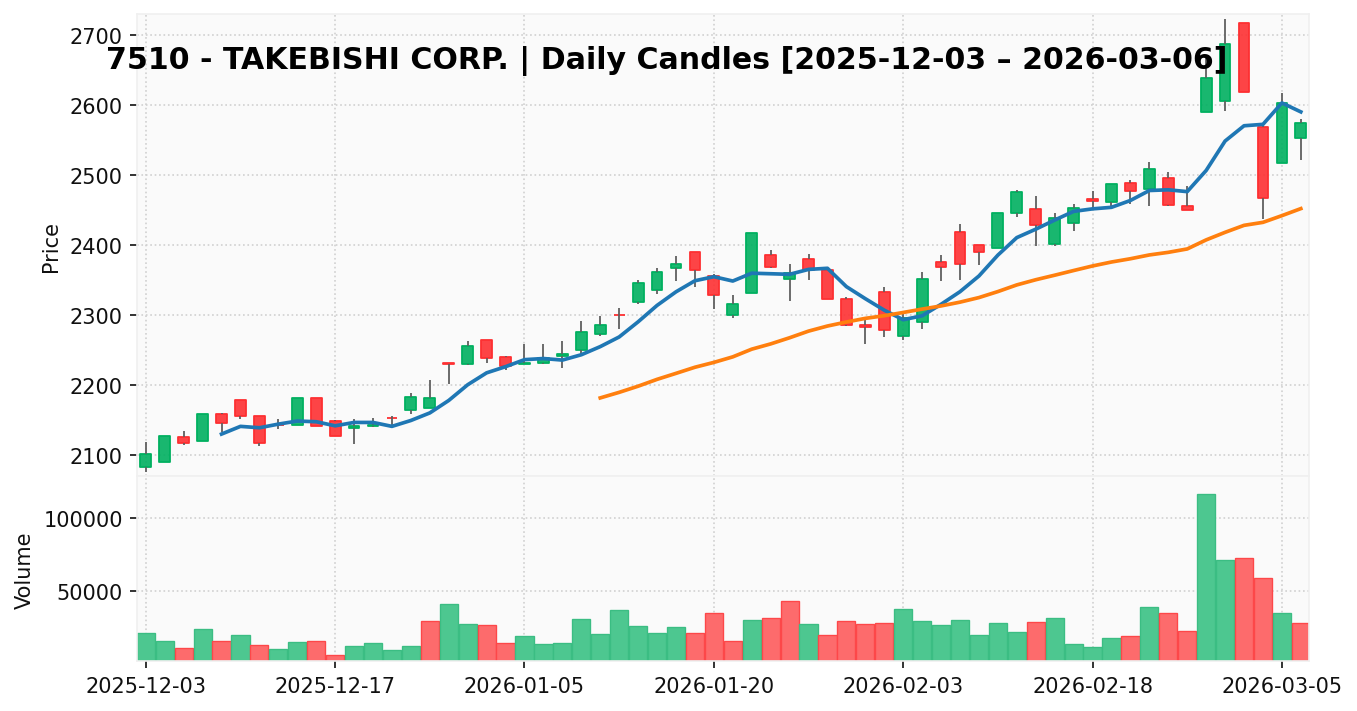 たけびし(銘柄コード:7510) ※2026/03/08朝更新