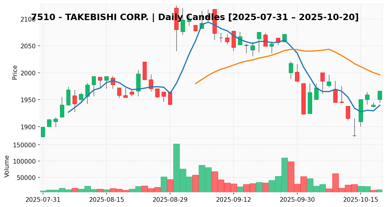 たけびし(銘柄コード:7510) ※2025/10/21朝更新