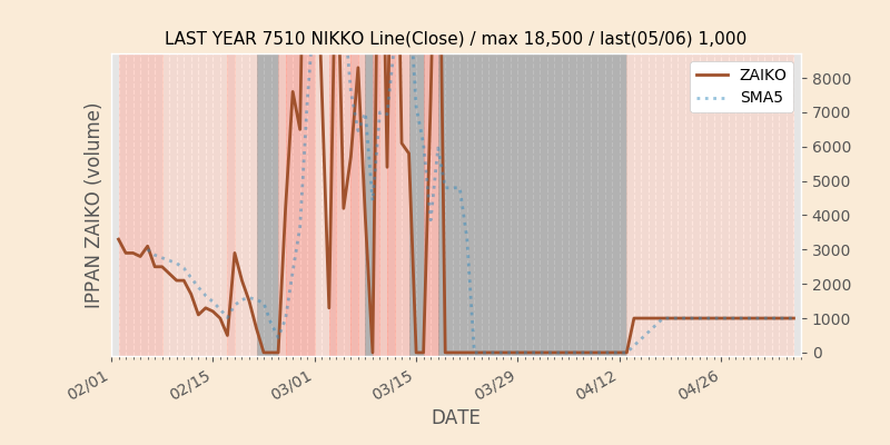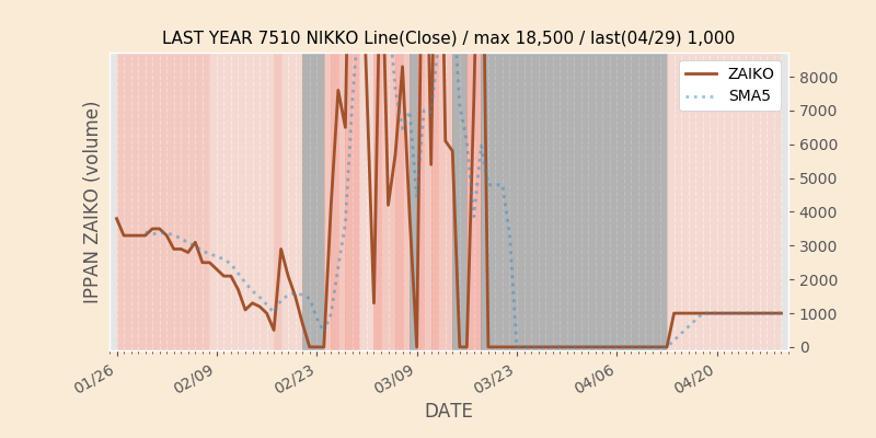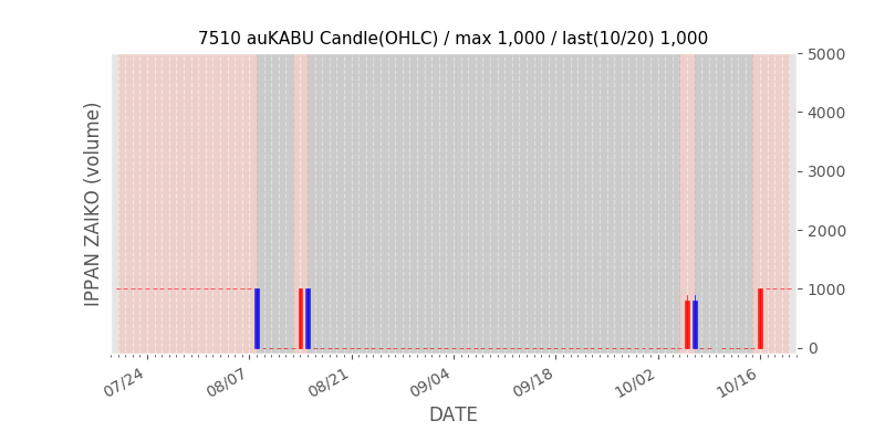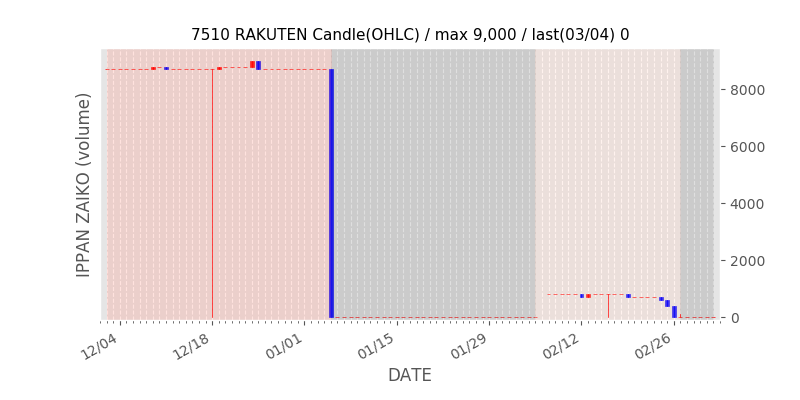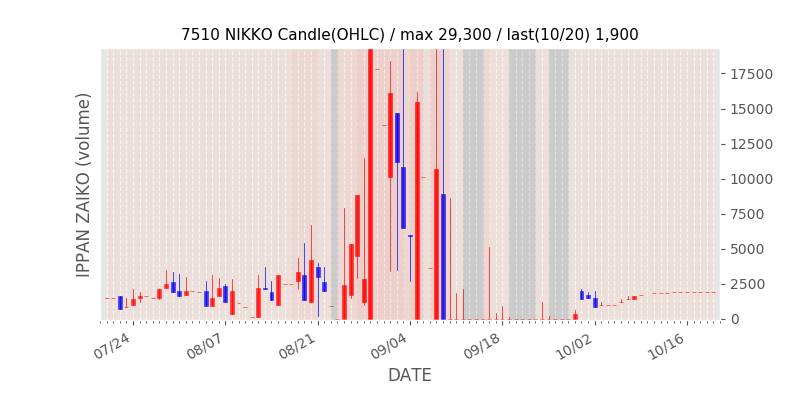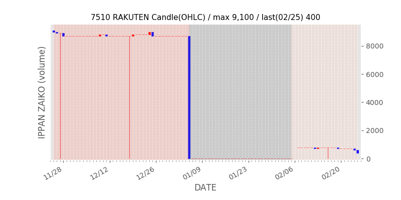 権利落ち日になると在庫が急回復します。どれだけの在庫が供給されたかを類推できます。もちろん、権利付最終日以前に大量補充された例も目立ちますから、過去チャートをご覧になる際は日付にご注意ください。