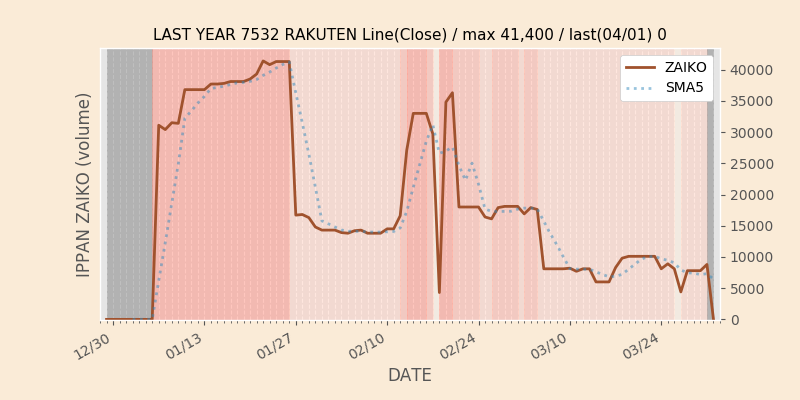 権利落ち日になると在庫が急回復します。どれだけの在庫が供給されたかを類推できます。もちろん、権利付最終日以前に大量補充された例も目立ちますから、過去チャートをご覧になる際は日付にご注意ください。