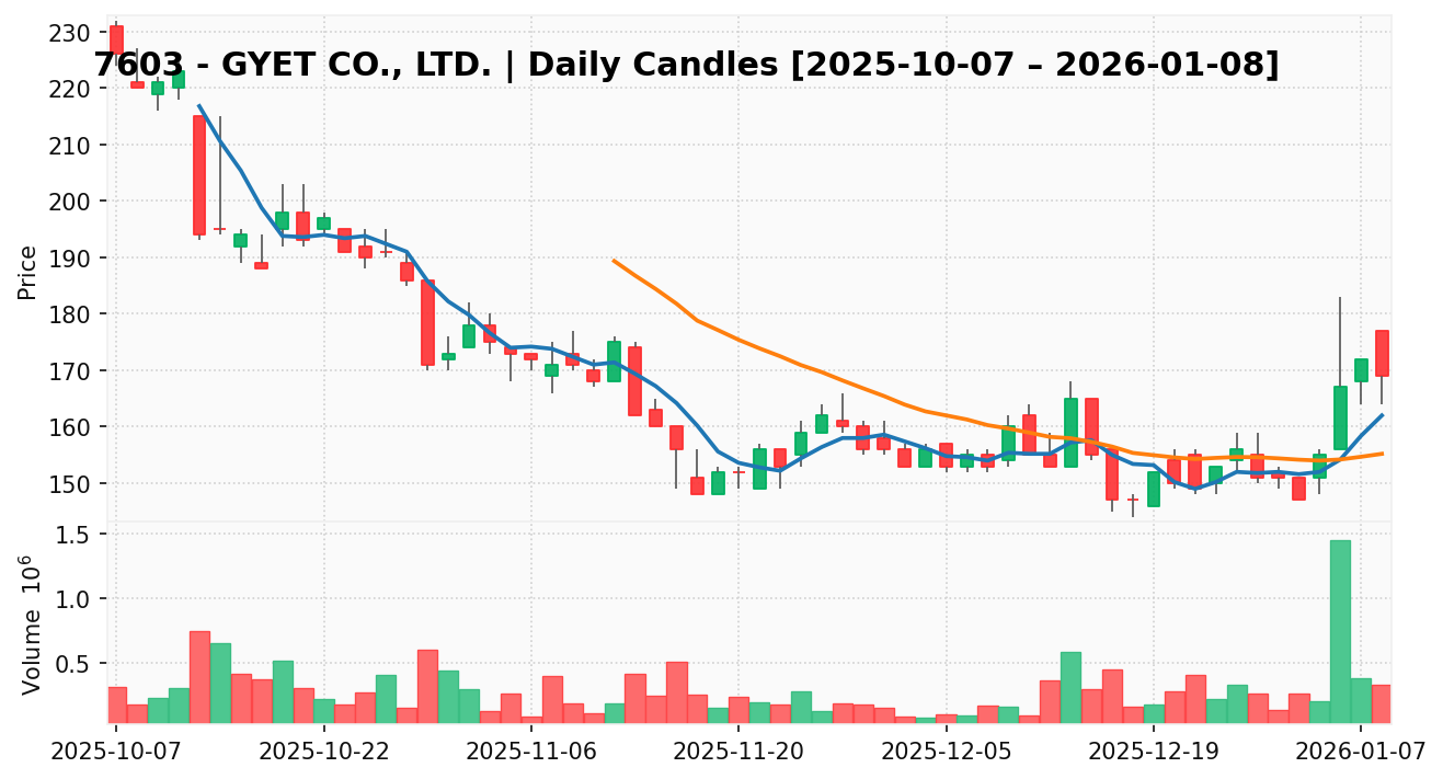 ジーイエット(銘柄コード:7603) ※2026/01/09朝更新
