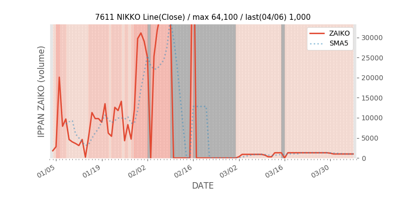 権利落ち日になると在庫が急回復します。どれだけの在庫が供給されたかを類推できます。もちろん、権利付最終日以前に大量補充された例も目立ちますから、過去チャートをご覧になる際は日付にご注意ください。
