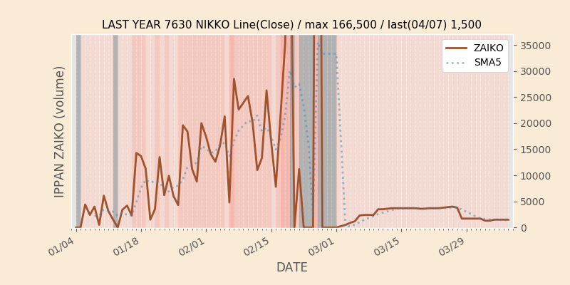 権利落ち日になると在庫が急回復します。どれだけの在庫が供給されたかを類推できます。もちろん、権利付最終日以前に大量補充された例も目立ちますから、過去チャートをご覧になる際は日付にご注意ください。
