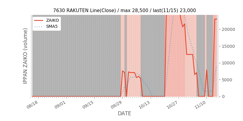 - SBIとGMOを含んだ直近数日の在庫の履歴