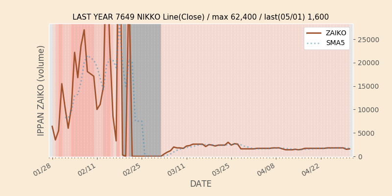 権利落ち日になると在庫が急回復します。どれだけの在庫が供給されたかを類推できます。もちろん、権利付最終日以前に大量補充された例も目立ちますから、過去チャートをご覧になる際は日付にご注意ください。