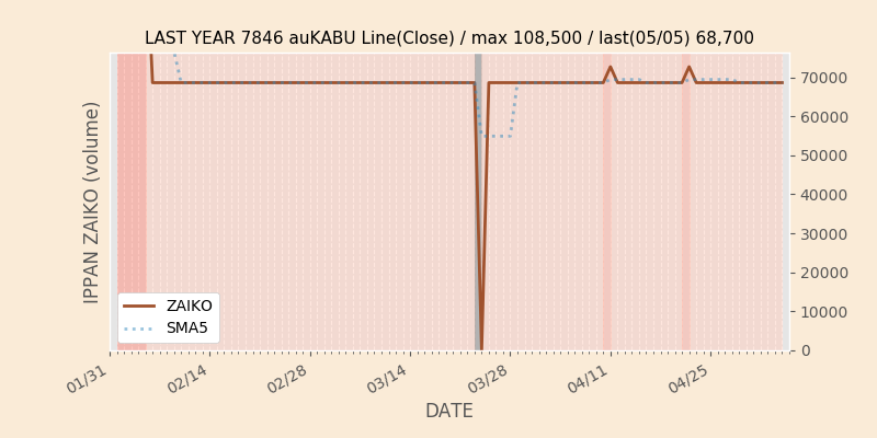 権利落ち日になると在庫が急回復します。どれだけの在庫が供給されたかを類推できます。もちろん、権利付最終日以前に大量補充された例も目立ちますから、過去チャートをご覧になる際は日付にご注意ください。