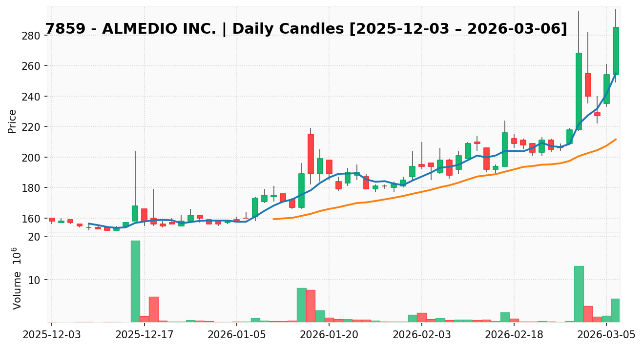 アルメディオ(銘柄コード:7859) ※2026/03/07朝更新