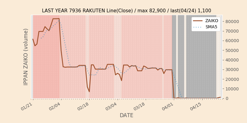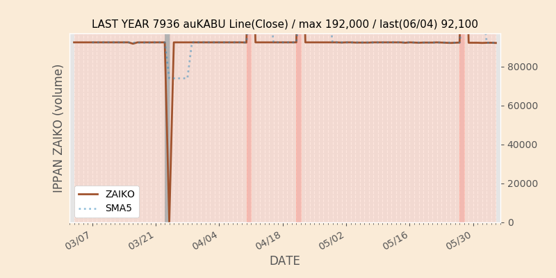 権利落ち日になると在庫が急回復します。どれだけの在庫が供給されたかを類推できます。もちろん、権利付最終日以前に大量補充された例も目立ちますから、過去チャートをご覧になる際は日付にご注意ください。
