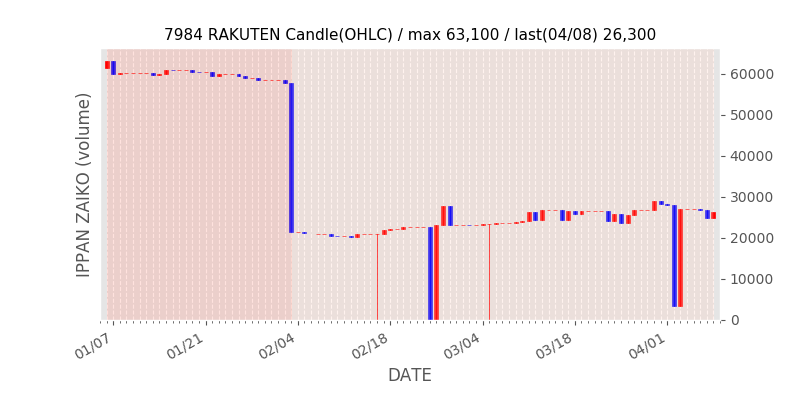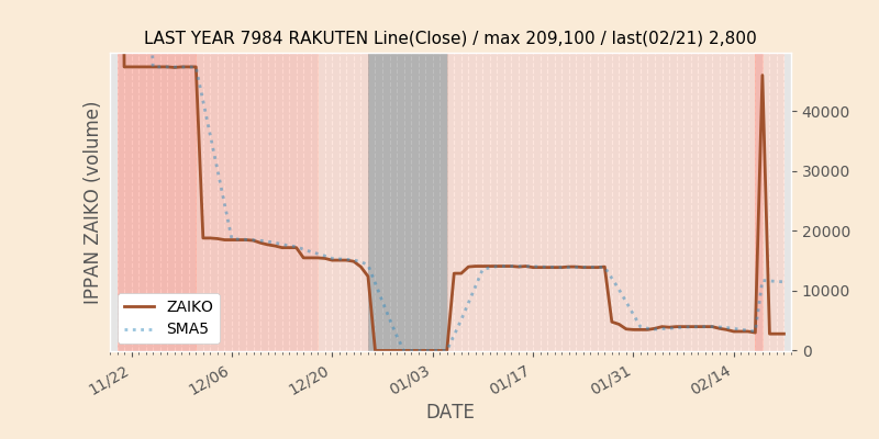 権利落ち日になると在庫が急回復します。どれだけの在庫が供給されたかを類推できます。もちろん、権利付最終日以前に大量補充された例も目立ちますから、過去チャートをご覧になる際は日付にご注意ください。