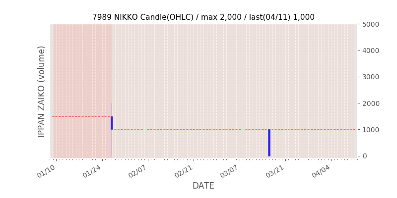 権利落ち日になると在庫が急回復します。どれだけの在庫が供給されたかを類推できます。もちろん、権利付最終日以前に大量補充された例も目立ちますから、過去チャートをご覧になる際は日付にご注意ください。