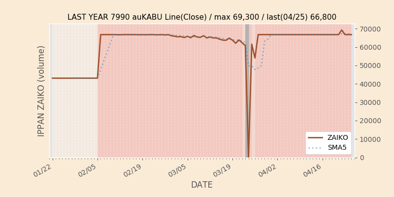 権利落ち日になると在庫が急回復します。どれだけの在庫が供給されたかを類推できます。もちろん、権利付最終日以前に大量補充された例も目立ちますから、過去チャートをご覧になる際は日付にご注意ください。