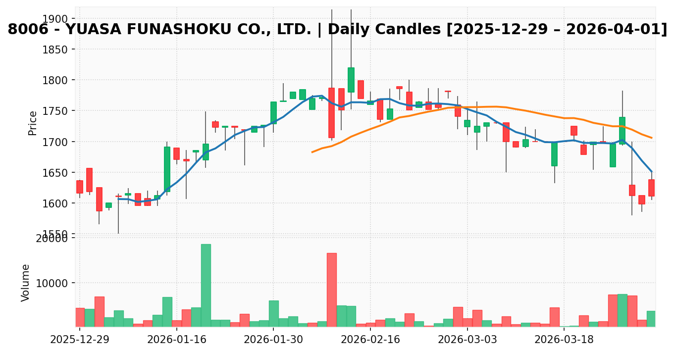 ユアサ・フナショク(銘柄コード:8006) ※2026/04/02朝更新
