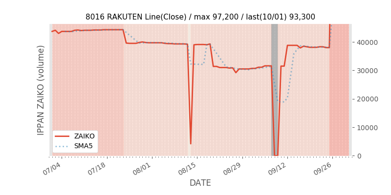 権利落ち日になると在庫が急回復します。どれだけの在庫が供給されたかを類推できます。もちろん、権利付最終日以前に大量補充された例も目立ちますから、過去チャートをご覧になる際は日付にご注意ください。