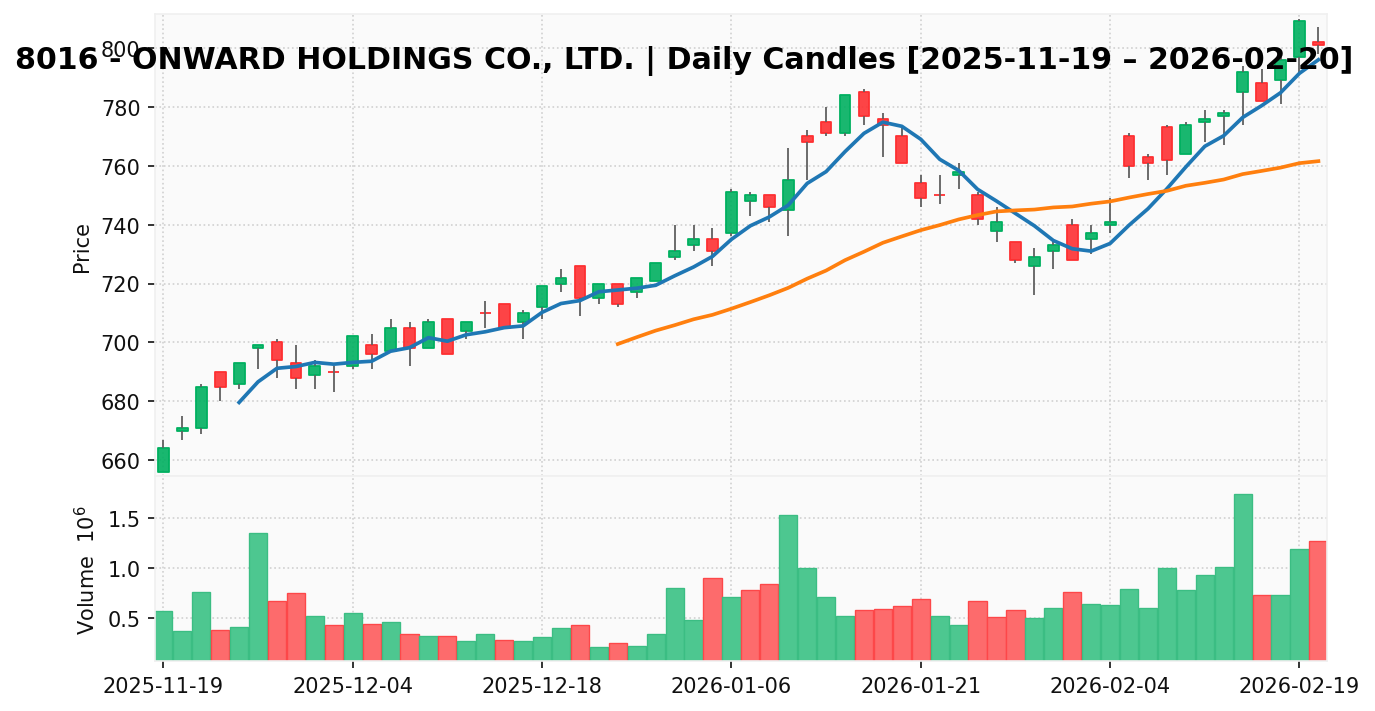 オンワード(銘柄コード:8016) ※2026/02/24朝更新
