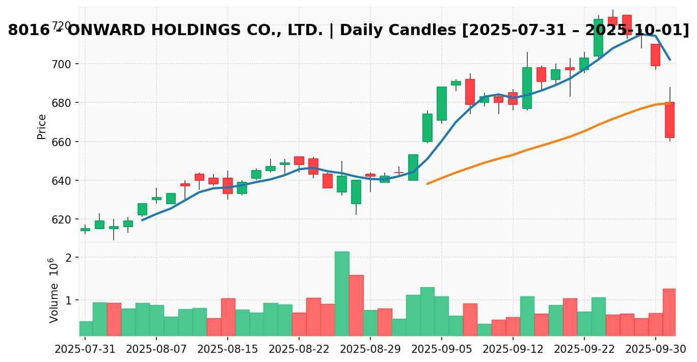 オンワード(銘柄コード:8016) ※2025/10/02朝更新