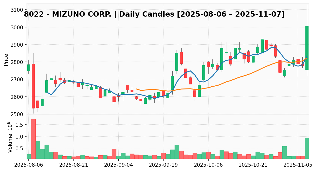 ミズノ(銘柄コード:8022) ※2025/11/08朝更新