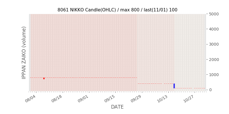 権利落ち日になると在庫が急回復します。どれだけの在庫が供給されたかを類推できます。もちろん、権利付最終日以前に大量補充された例も目立ちますから、過去チャートをご覧になる際は日付にご注意ください。