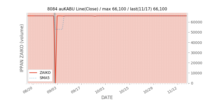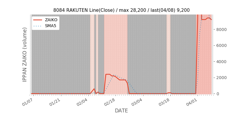 権利落ち日になると在庫が急回復します。どれだけの在庫が供給されたかを類推できます。もちろん、権利付最終日以前に大量補充された例も目立ちますから、過去チャートをご覧になる際は日付にご注意ください。