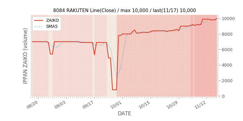 - SBIとGMOを含んだ直近数日の在庫の履歴