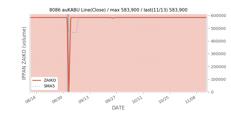 権利落ち日になると在庫が急回復します。どれだけの在庫が供給されたかを類推できます。もちろん、権利付最終日以前に大量補充された例も目立ちますから、過去チャートをご覧になる際は日付にご注意ください。