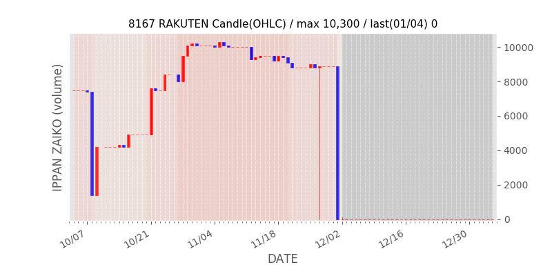 権利落ち日になると在庫が急回復します。どれだけの在庫が供給されたかを類推できます。もちろん、権利付最終日以前に大量補充された例も目立ちますから、過去チャートをご覧になる際は日付にご注意ください。