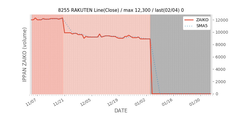 アクシアル リテイリング(8255)の一般信用在庫推移