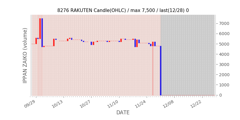 権利落ち日になると在庫が急回復します。どれだけの在庫が供給されたかを類推できます。もちろん、権利付最終日以前に大量補充された例も目立ちますから、過去チャートをご覧になる際は日付にご注意ください。