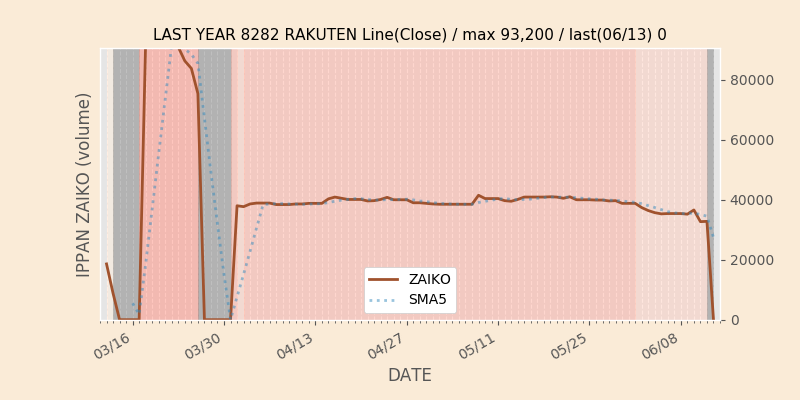 権利落ち日になると在庫が急回復します。どれだけの在庫が供給されたかを類推できます。もちろん、権利付最終日以前に大量補充された例も目立ちますから、過去チャートをご覧になる際は日付にご注意ください。
