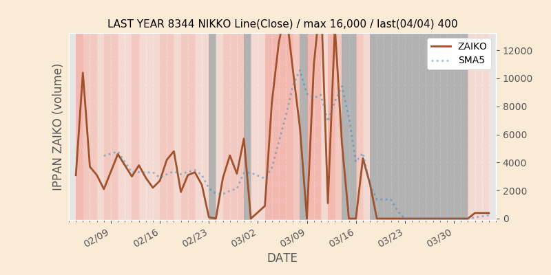 権利落ち日になると在庫が急回復します。どれだけの在庫が供給されたかを類推できます。もちろん、権利付最終日以前に大量補充された例も目立ちますから、過去チャートをご覧になる際は日付にご注意ください。