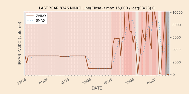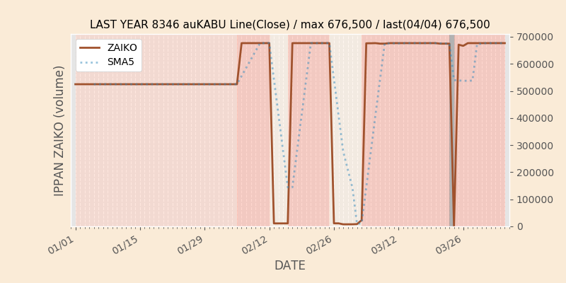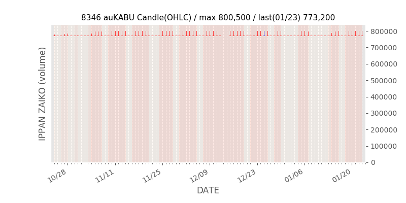 権利落ち日になると在庫が急回復します。どれだけの在庫が供給されたかを類推できます。もちろん、権利付最終日以前に大量補充された例も目立ちますから、過去チャートをご覧になる際は日付にご注意ください。
