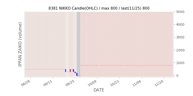 権利落ち日になると在庫が急回復します。どれだけの在庫が供給されたかを類推できます。もちろん、権利付最終日以前に大量補充された例も目立ちますから、過去チャートをご覧になる際は日付にご注意ください。