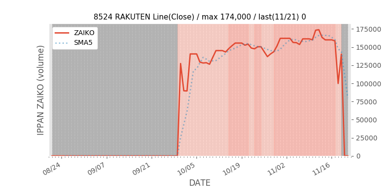 - SBIとGMOを含んだ直近数日の在庫の履歴